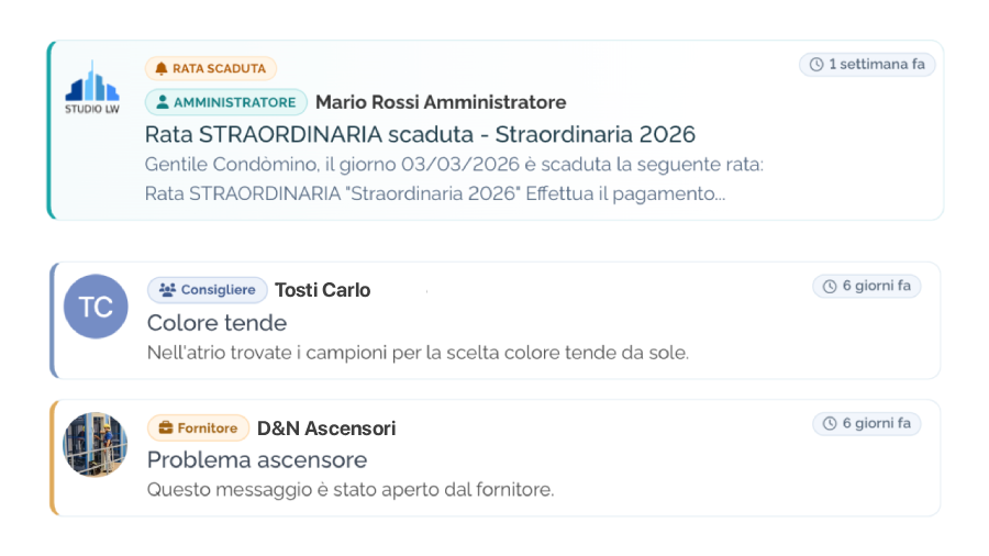 Da Marzo 2026 è disponibile su tutte le bacheca la nuova interfaccia per le comunicazioni. Più chiarezza e l’utilizzo di colori specifici a seconda del ruolo di chi pubblica la comunicazione.