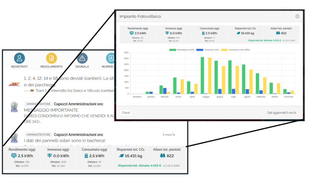 Leggi direttamente in bacheca i dati di produzione dell’impianto fotovoltaico condominiale